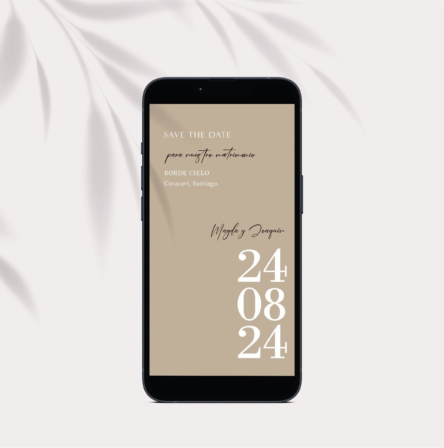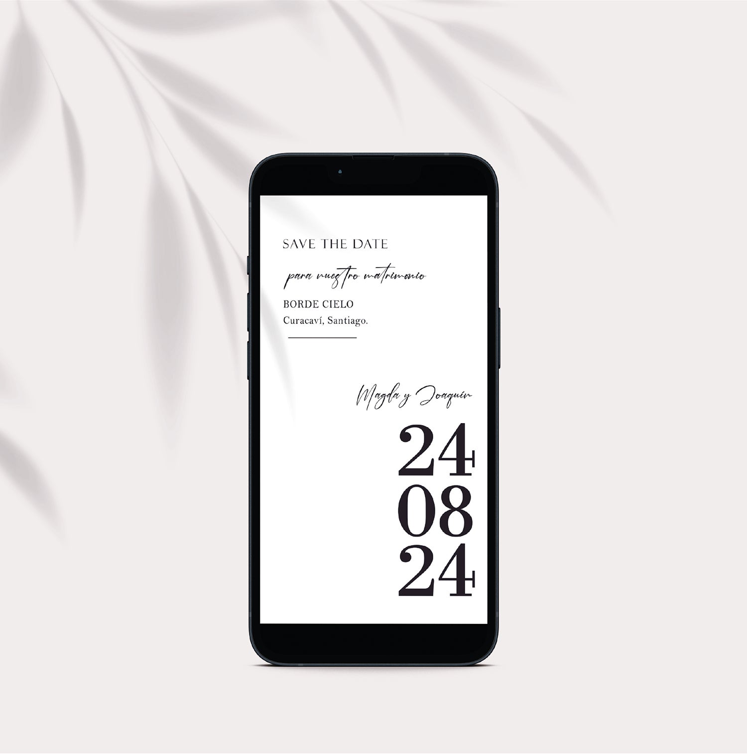 Envía un Save the Date digital a tus invitados y asegúrate que reserven la fecha para tu matrimonio. Con nuestro formato digital, podrás personalizar tu invitación y enviar de forma fácil e inmediata. ¡Empieza a planear tu evento desde el principio con nuestra opción de Save the Date!