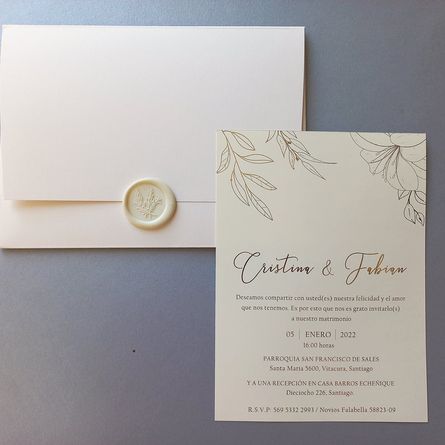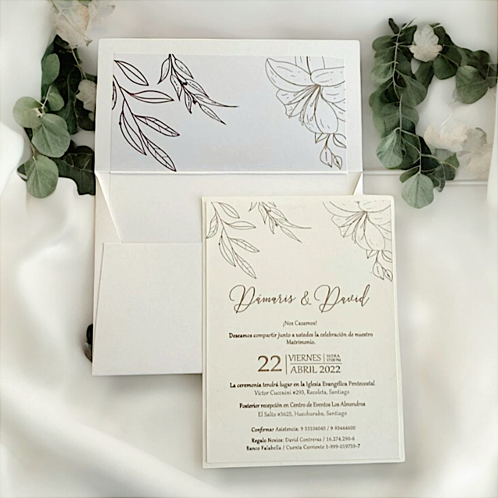 Incluye nombre de novios (se imprime el nombre en una tarjetita que se pega al reverso del sobre).