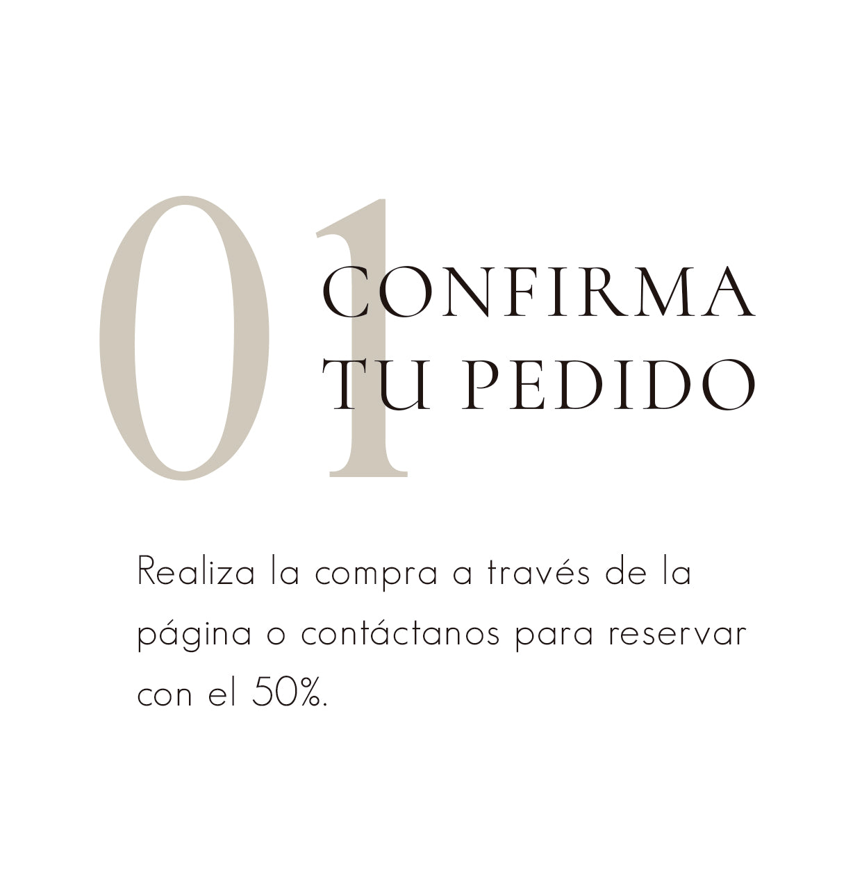 La reserva se realiza con el 50% del total de tu pedido. Indícanos el nombre o código de la invitación o productos y la cantidad que necesitas.