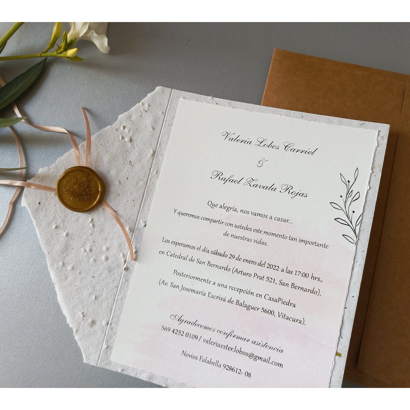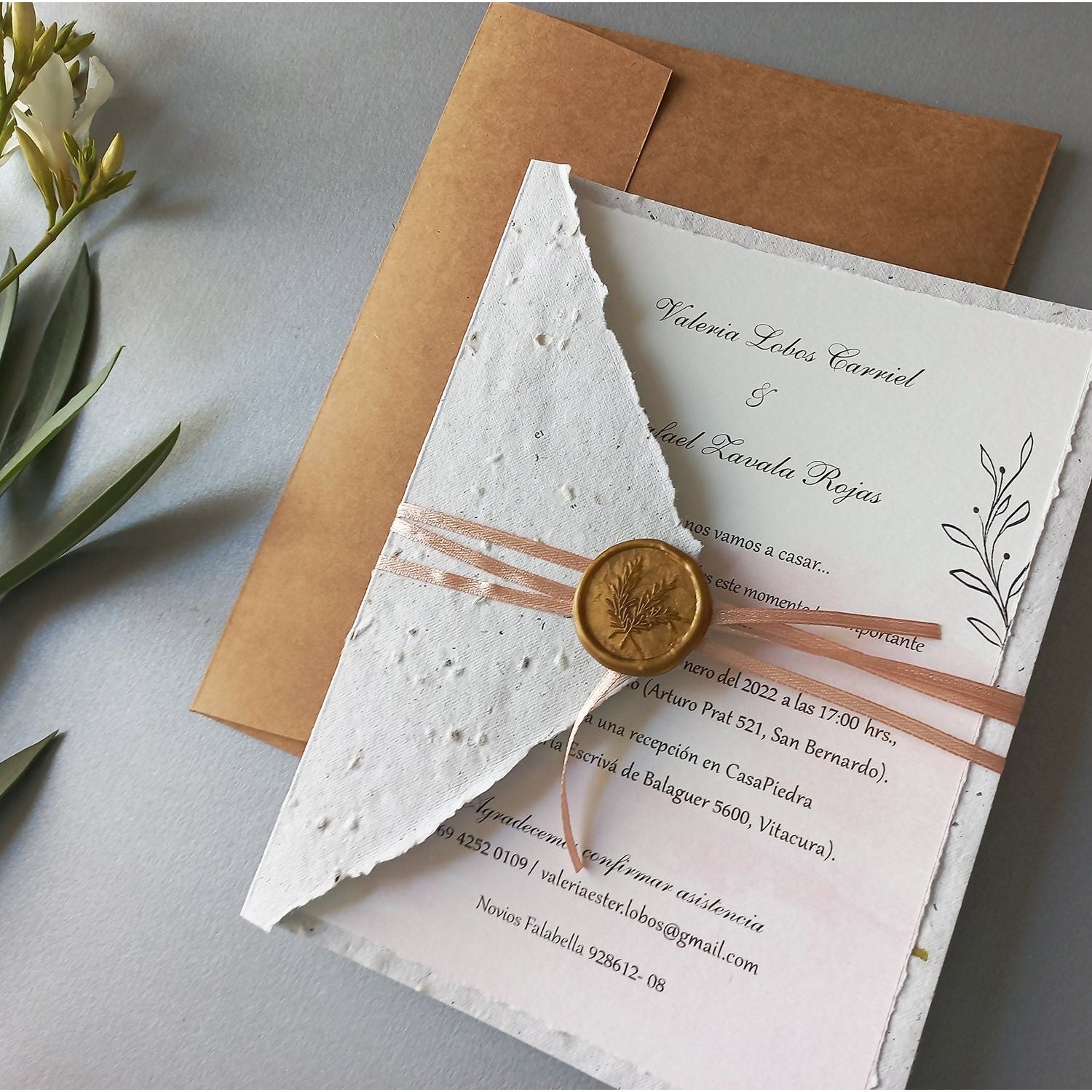 • Cierre con cinta rosa y sello de cera