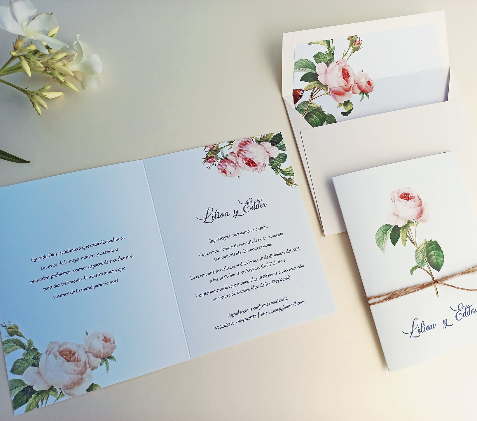 • Diptico en papel texturado blanco 250 gr.con diseño floral
